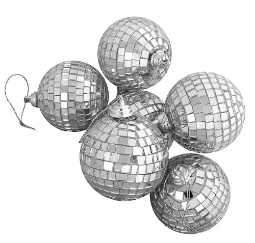 Jazz up your holiday decor this season with these classic disco ball ornamentsEach ornament is covered with tiny square mirrors which will reflect light creating a dazzling lighting effectColor: silver splendorEach ornament comes ready-to-hang on a silver cord Pack of 6 Disco Ball Christmas OrnamentsItem #N100347Dimensions: 1.