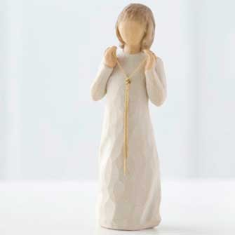Figurine is 5" tall.Arrives in a gift box, ready for gift-giving.Willow tree is not necessarily a likeness, it's a way of conveying emotion.Artist sUSAn lordi hand carves each original willow tree sculpture.Your friendship is truly golden..